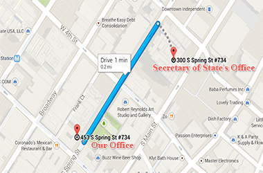 Sacramento Main Office 1500 11th Street, 2nd and 3rd Floors Sacramento, CA 95814 Only Sacramento Office provides mailing service Los Angeles Regional Office 300 South Spring Street, Room 12513 Los Angeles, CA 90013 Please Note: The California Secretary of State's Los Angeles office has expanded its authentication services to include the authentication of the signatures of California notaries public, in addition to county and state official's signatures. |